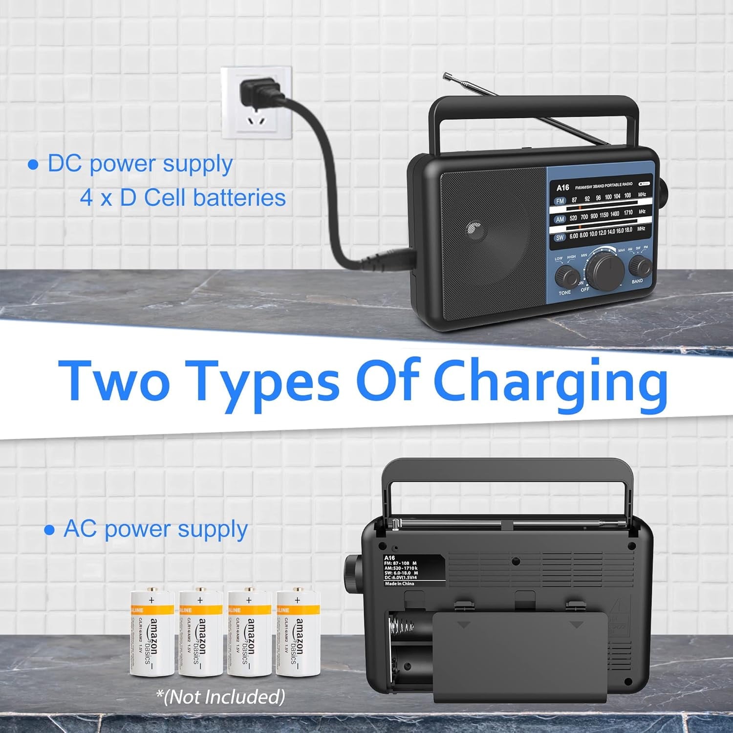 Greadio AM FM Radio with Big Knob, FM Radio Ease for Use, Battery Powered Portable Shortwave Radio with Integrated Speakers, AM FM Radio & AC Power Cord, Blue